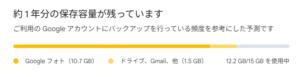 移動前のストレージ フォトだけで10.7GB使用しています