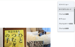 アルバムをクリックして、写真を表示させたら右上の「縦の三点リーダー」をクリックして、「ダウンロード」を選択。