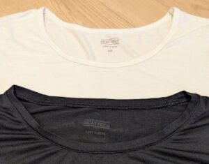 わたしは身長162cmペラペラの体型でヒートテックならSサイズを着ているので、これはいけるのではないか、ということでキッズSサイズの長袖と半袖を買いました。