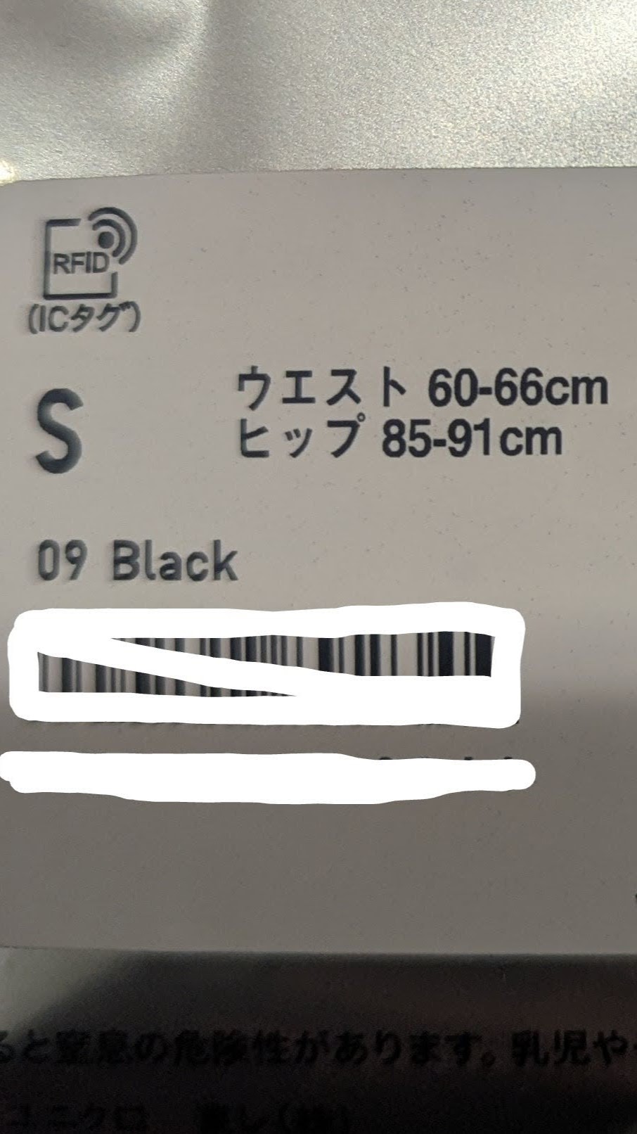 パッケージに書かれているKIDS160のサイズと女性用Sのサイズを比べてみました。特に問題なさそうです。なんと、ウエストサイズはKIDS160の方が大きいのですね。数センチの差ですが、後ではいてみたときにこの差を実感することになるとは・・・