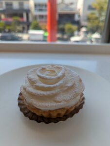 上に乗った美しいメレンゲの下には、サクサクのパイ生地と、酸味と甘さのバランスが絶妙なレモンクリームが隠れていました。真夏でも重たくなく、さっぱりと食べられてとても美味しかったです。